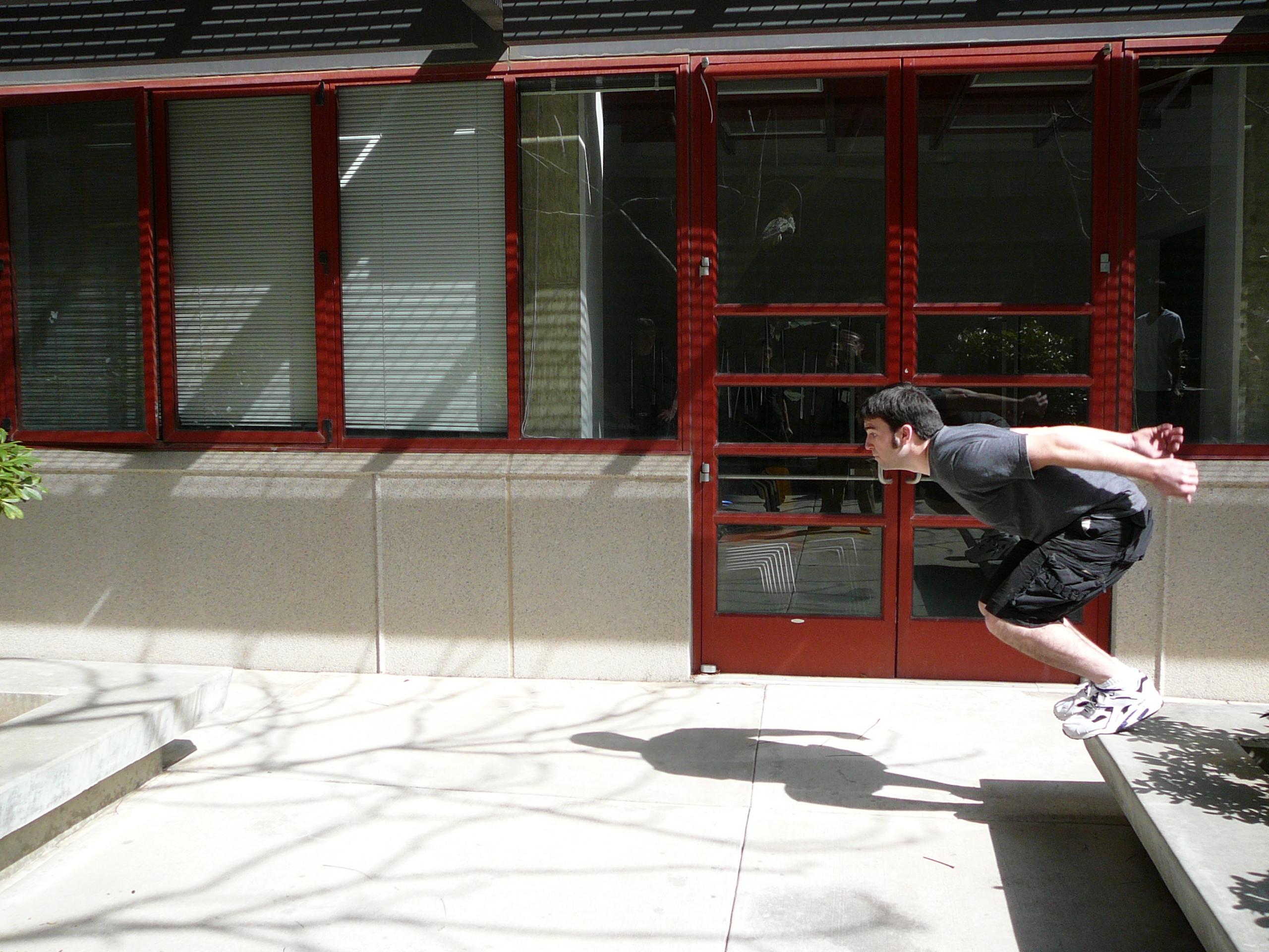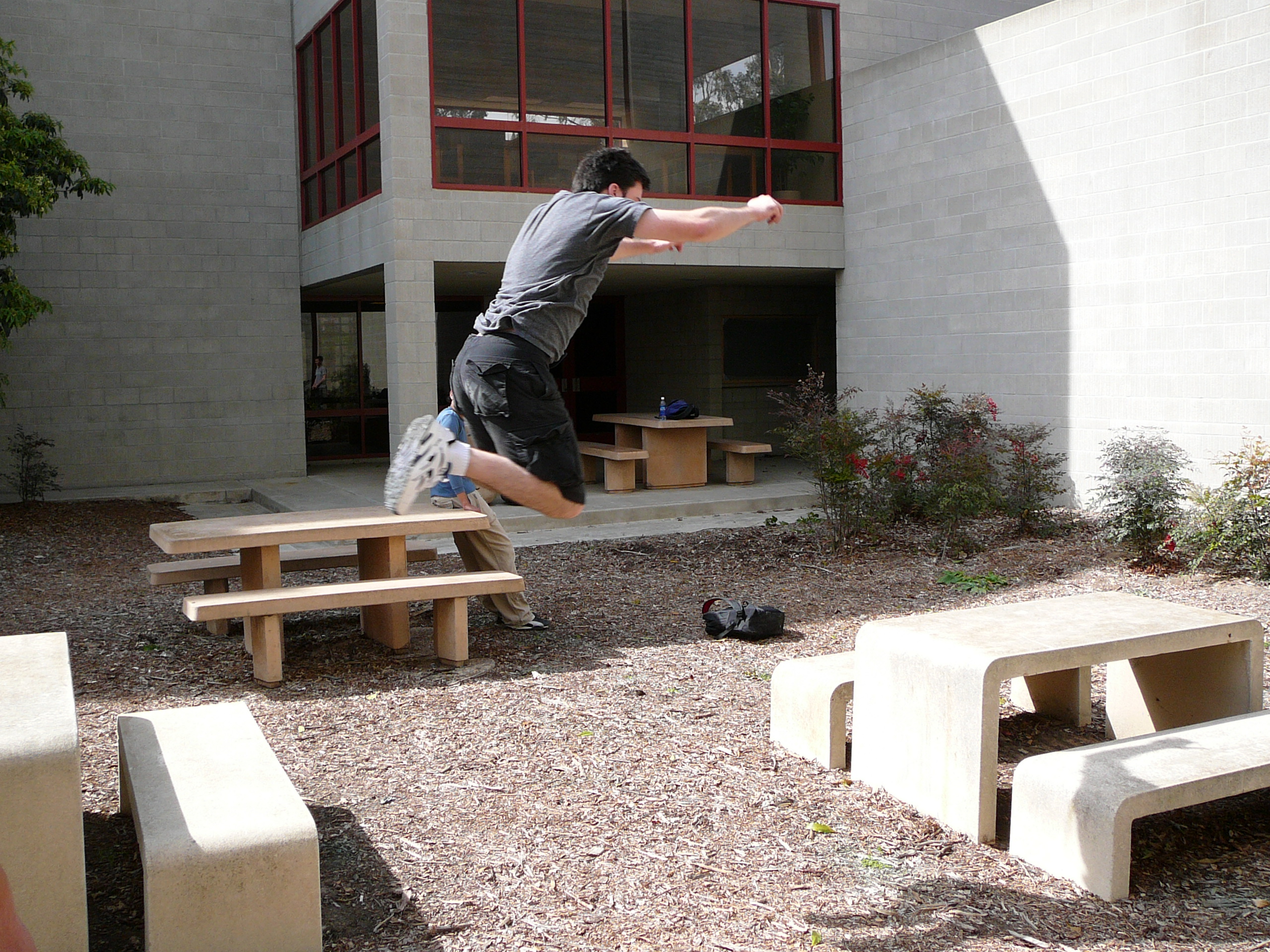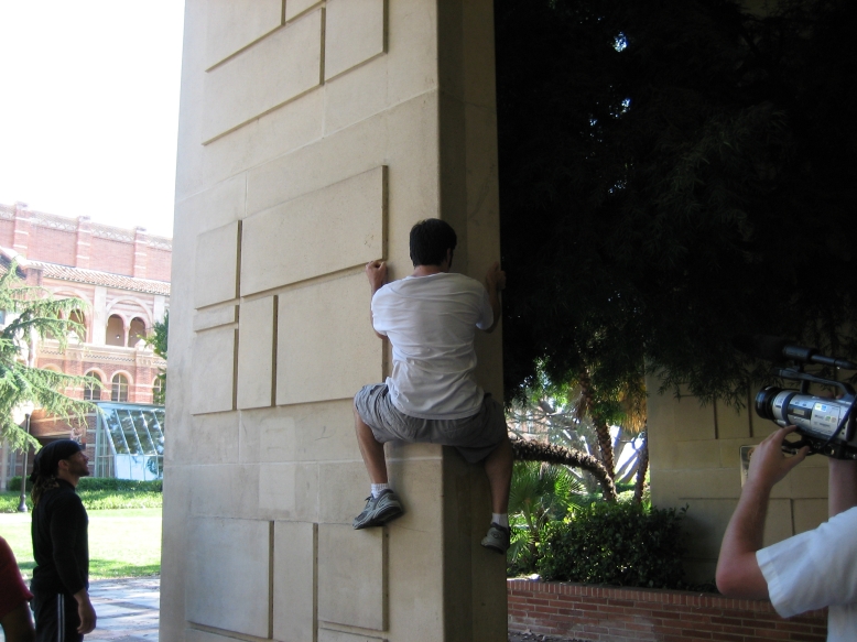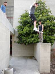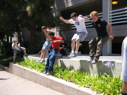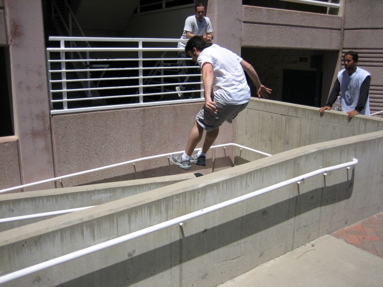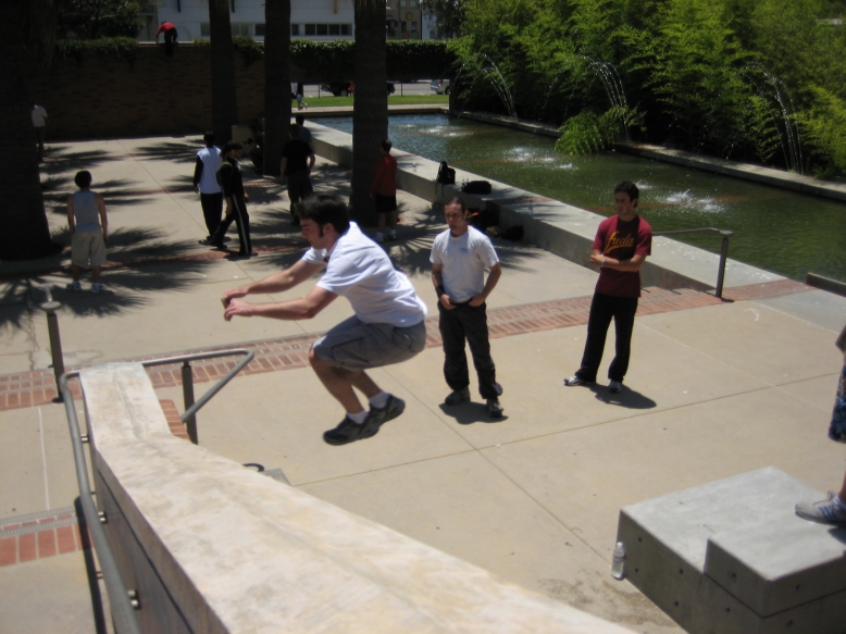 6-15-2006Had to go a long way back to get more photos but here you go. 3-4-2007Went down to San Diego for a session there at UCSD. Despite the fact that we arrived late and several people had already injured themselves, it was a lot of fun. There's a ton of pictures up on PKCali, but here's a couple with me being awesome. 4-1-2007Had to happen sooner or later. Huntington beach session today was fantastic... However within 20 minutes of showing up I slipped off a rail precision and fell backwards. My wrist has been killing me ever since. Not broken, but sprained/strained/wrecked/whatever. One month till France too. Hope it heals by then... 4-22-2007Finally went to a UCLA session that Cliff wasn't organizing. Was pretty chill but still managed to step up to a decent level by the end. Swelling seems to be going down in my hand so that's good. Here are the pics. Unfortunately I was the one taking them, so you won't see me. 4-28-2007We hit up UCLA again this week. Despite my previous injury I had a great time. All the photos are up at PKCali, but here's a sample of the stuff I did. (I really made that 13 foot wall run, they just didn't get a picture) 5/6/2007 : PKCali in Paris!Woke up early and took the metro to La Defense. Great place to go but I have a feeling I missed the fantastic playground that everyone made it out to be. I looked all over the plaza too. Basically covered the entire square mile around the plaza. That being said I found plenty to drill and after four hours I left exhausted but happy. Also some videos... In my wanderings of the surroundings at La Defense, I found this 30 foot tall thumb. I just don't get art. 5/7/2007 : Lisses NOT called on account of rain.Despite the weather-psychic's prediction of showers, I decided to go to Evry and Lisses today anyway... And holy god am I glad I didn't wuss out. This place *is* the fantastic playground that everyone makes it out to be. Getting to Dame Du Lac was simple enough if you followed the roads and once you're there, you really do find everything. Seriously... Do any of these look familiar??? I apologize for the lack of pictures of me doing stuff. I was having too much fun to take the time to setup the tripod and figure out composition. Just picture me being generally parkoury all over these. I have been tested in the fires of Lisses and I have passed. I have left my mark with the legends and I have seen how short I fall. Sorry, but this was as close as I get to a spiritual experience and poetic words are required. See? Everything here is bigger than you expect. The French game is really on a whole other level. Both humbling and inspiring. I kneel before you, French Traceurs. |